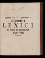 Kupfertitel: Algemeines Lexicon Der Künste und Wissenschaften. Bibliographischer Nachweis: SBB