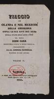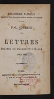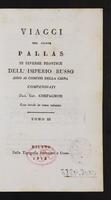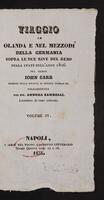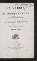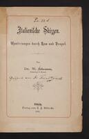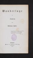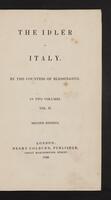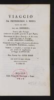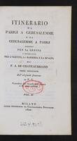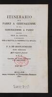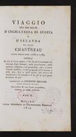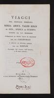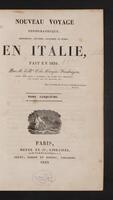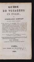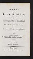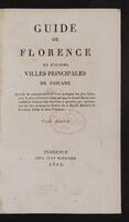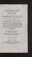 Lorenzo Baroni zugeschrieben: Beginn der Beschreibung in der 1. ital. Ausgabe 1800, Seite 19: ^Fiorentino incomincio il mio viaggio d'Italia ...^. - Widmung in der 3. Ausgabe 1803, Seite III von Lorenzo Baroni. Vorlageform der Veröffentlichungsangabe auf dem Titelblatt: Milan 1819. Chez Pierre et Joseph Vallardi, Éditeurs, Marchands d'Estampes, Libraires et Calcographes, rue Sainte Marguerite, n.° 1101. - Auf der Rückseite des Titelblatts: Imprimé Par P.M. Visaj. Bibliographischer Nachweis: Catalogo SBN - ITICCUTO0E111244