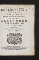 Titelblatt in Rot- und Schwarzdruck. Bibliographischer Nachweis: Catalogo SBN - IT\ICCU\UBOE\099848